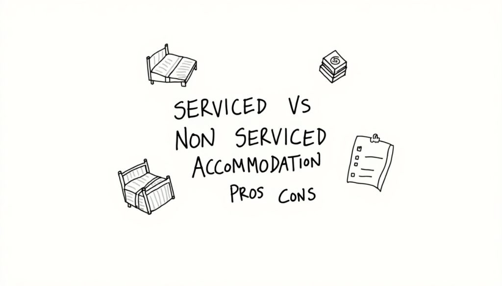 Who you are traveling with is another factor. Families may prefer non-serviced options for cooking facilities and more space, while business colleagues might lean toward serviced accommodations for the professional atmosphere. Don’t forget to compare the total costs, including any hidden fees or extra services that might apply.